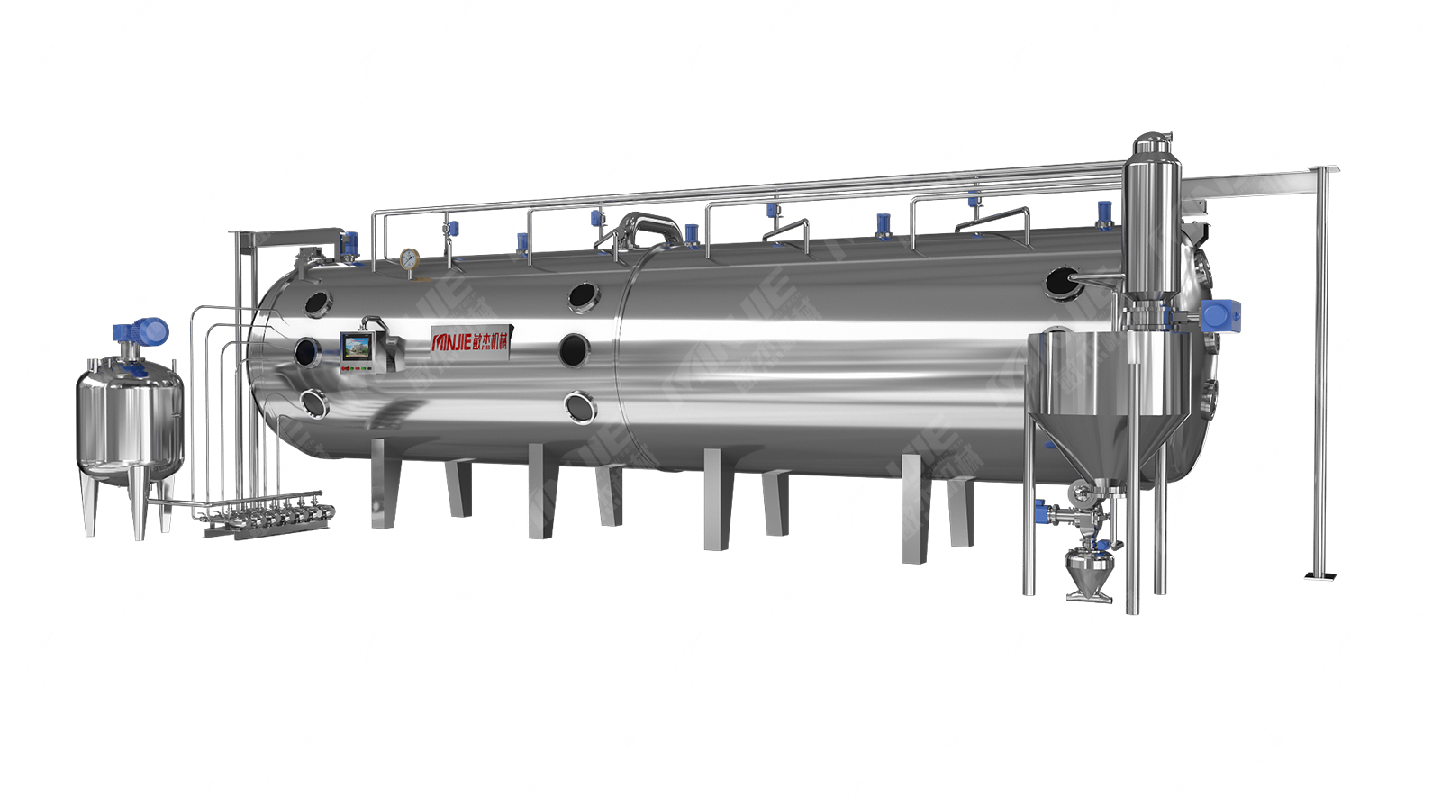 同时,设备采用全密闭真空结构设计,可有效隔绝空气与物料的接触,从根本上抑制易氧化有效成分的氧化反应,减少活性成分流失;同时可杜绝外界粉尘污染及物料交叉污染,严格遵循GMP洁净生产标准,保障产品品质的均一性与安全性。上海敏杰通过优化真空带式干燥机结构,采用科学设计增大蒸发面积,在低温真空环境下实现物料快速干燥,大幅缩短干燥周期,进一步降低有效成分在干燥过程中的损耗;搭配PLC全自动控制系统,可精准把控温度、真空度等核心工艺参数,确保干燥全过程稳定可控,进一步提升有效成分保留率。
